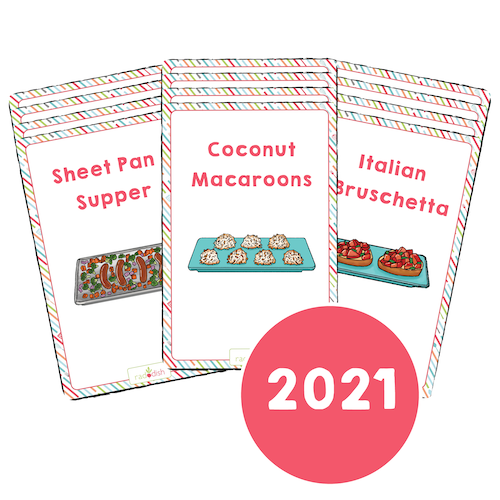 2021 Collection: Italian Bruschetta Family Fun Nachos Peanut Butter Cookies Honey Lime Fruit Salad Mexican Elote Egg in a Frame Coconut Macaroons Scallion Pancakes Sheet Pan Supper Roasted Pumpkin Seeds Thanksgiving Twists Holiday Brunch Punch